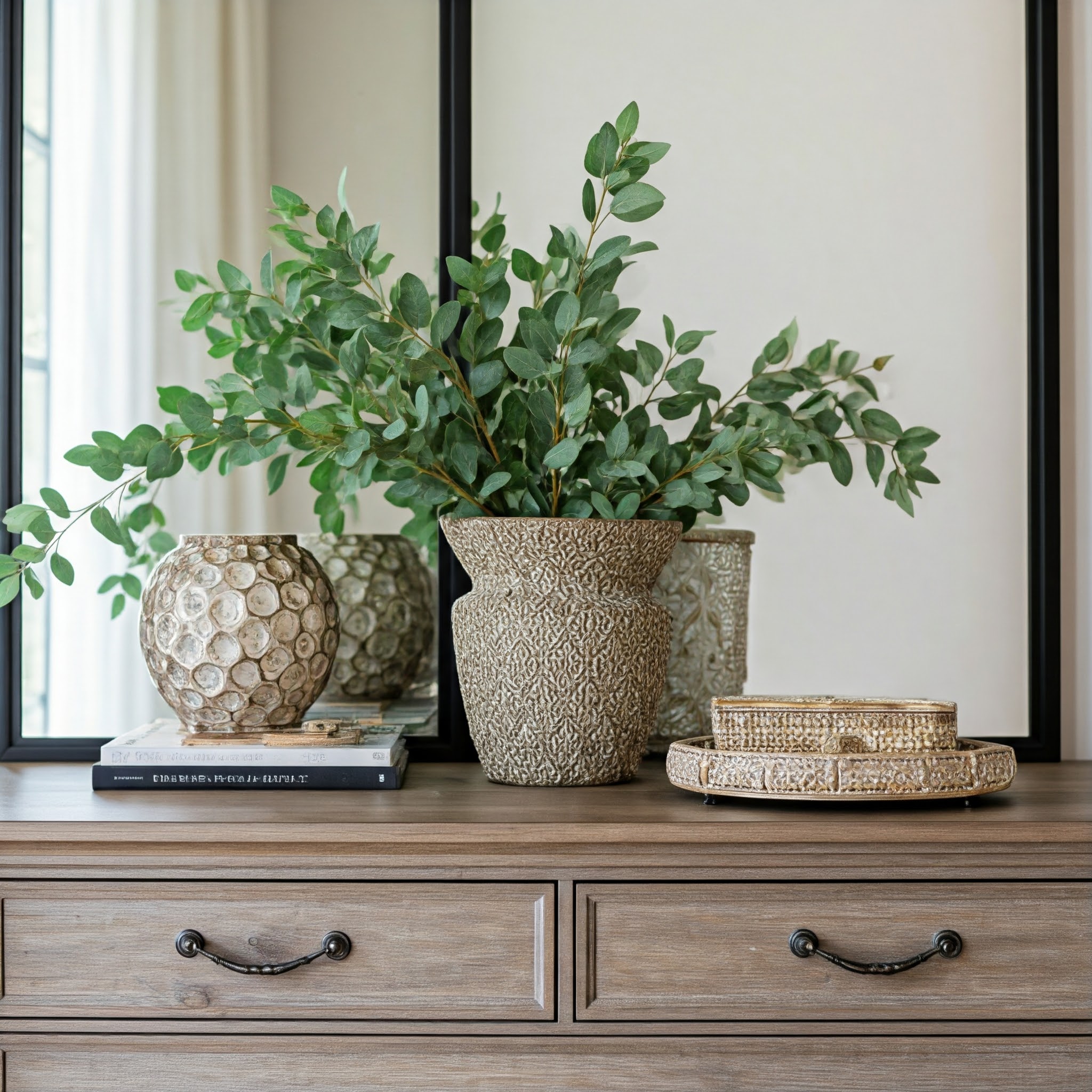 Layer: Add vases, candles, or sculptures for depth.
