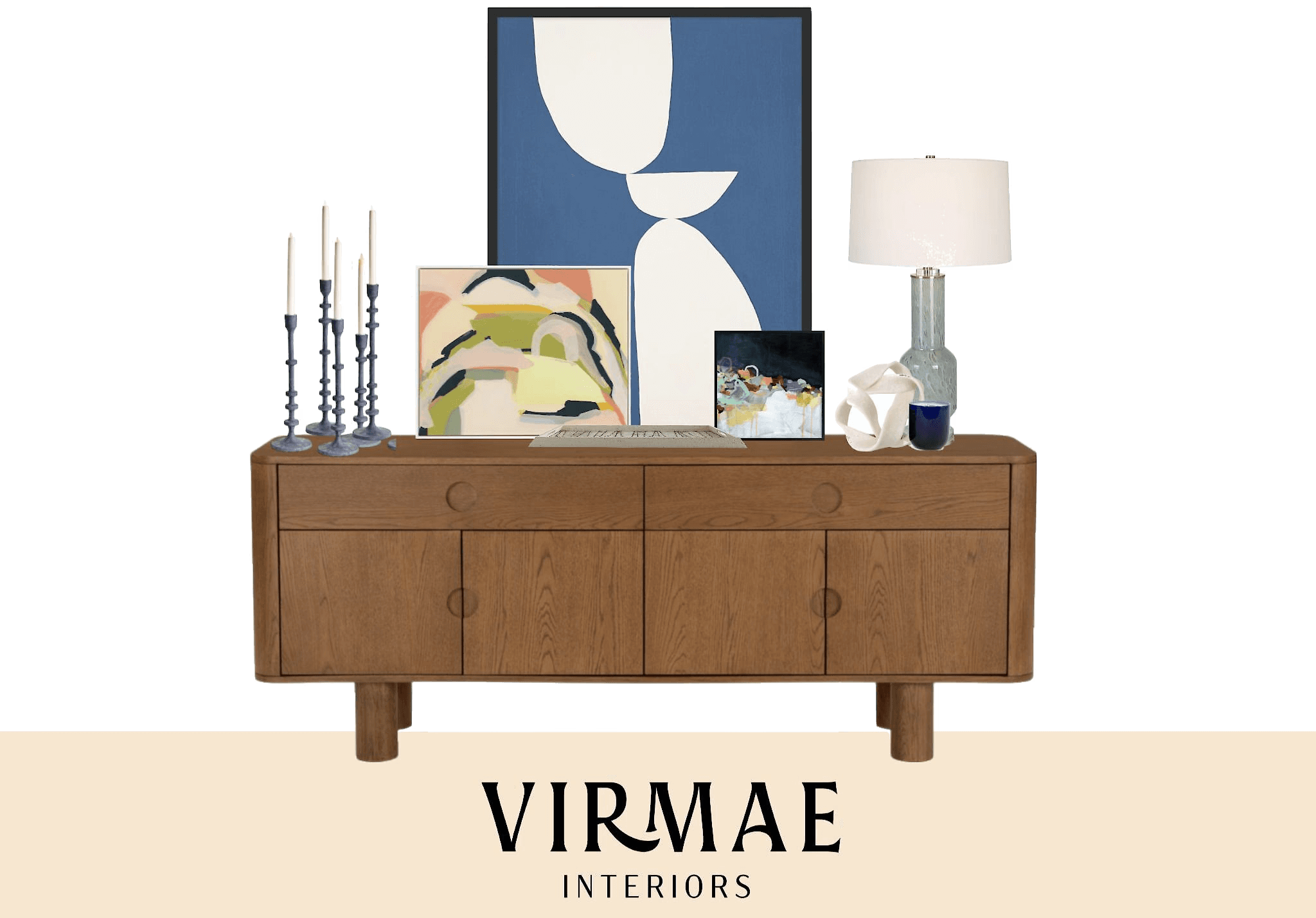 Eclectic: Get creative! But be intentional: choose specific shades (e.g., navy, sea glass, or cobalt instead of “blue”).