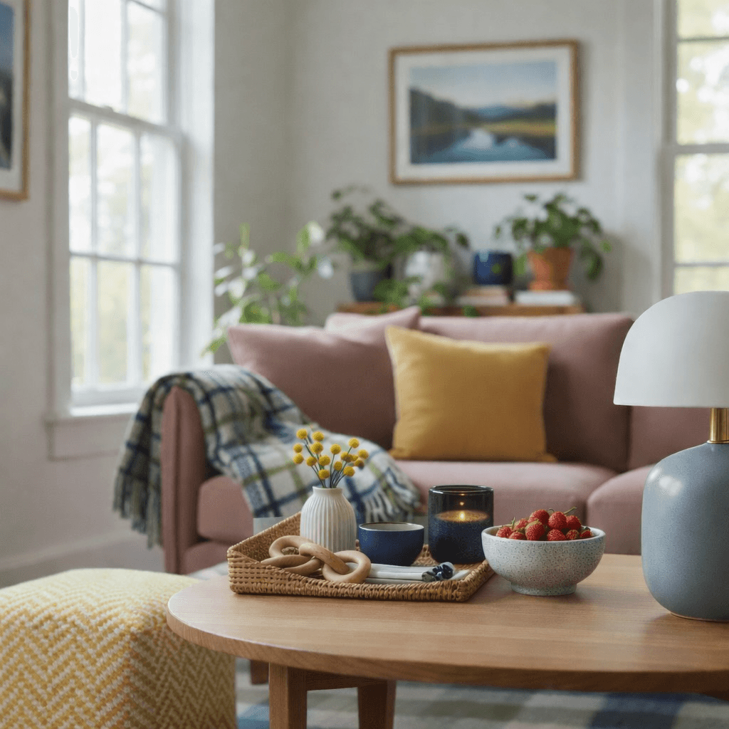 Add texture first. Rugs, knit pillows, wood finishes, and soft lighting create warmth without clutter.