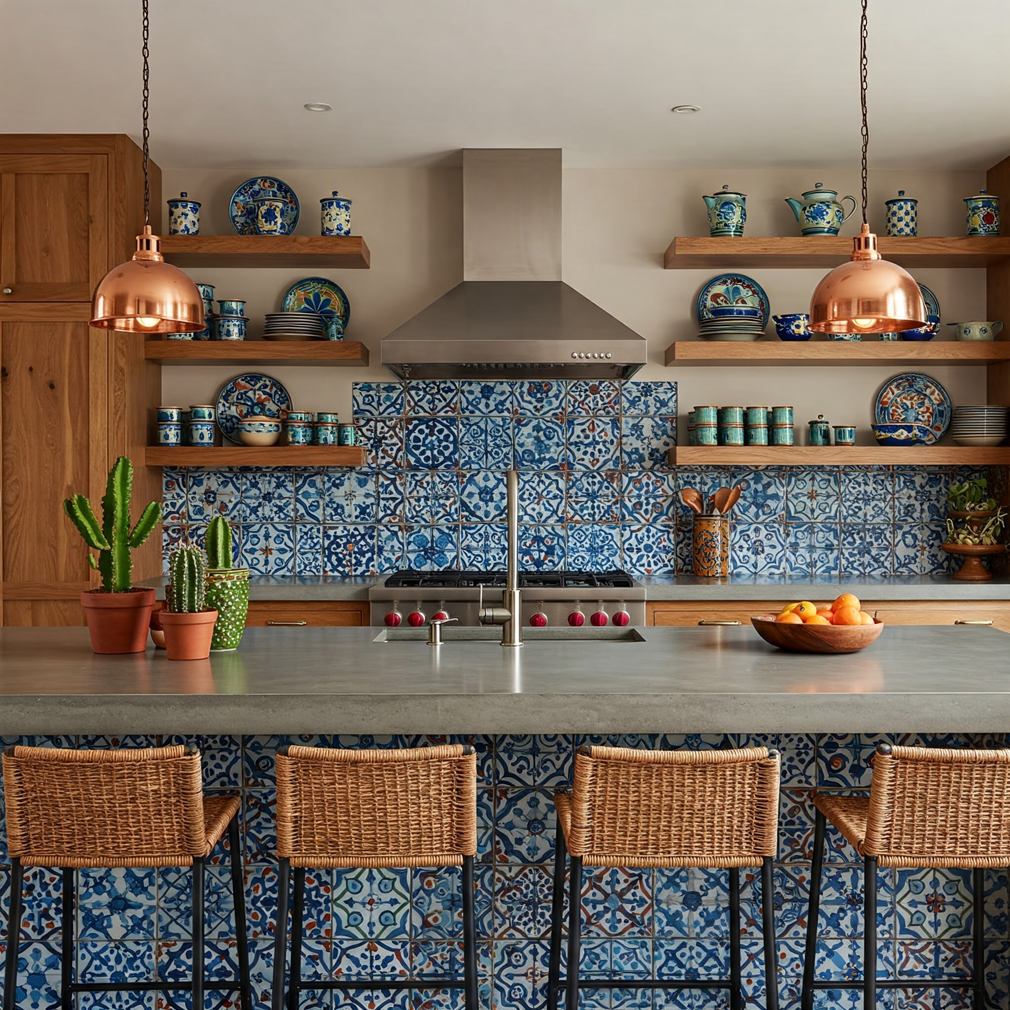 Colorful Backsplashes: Hand-painted Mexican tiles or Talavera patterns can create a striking focal point.
