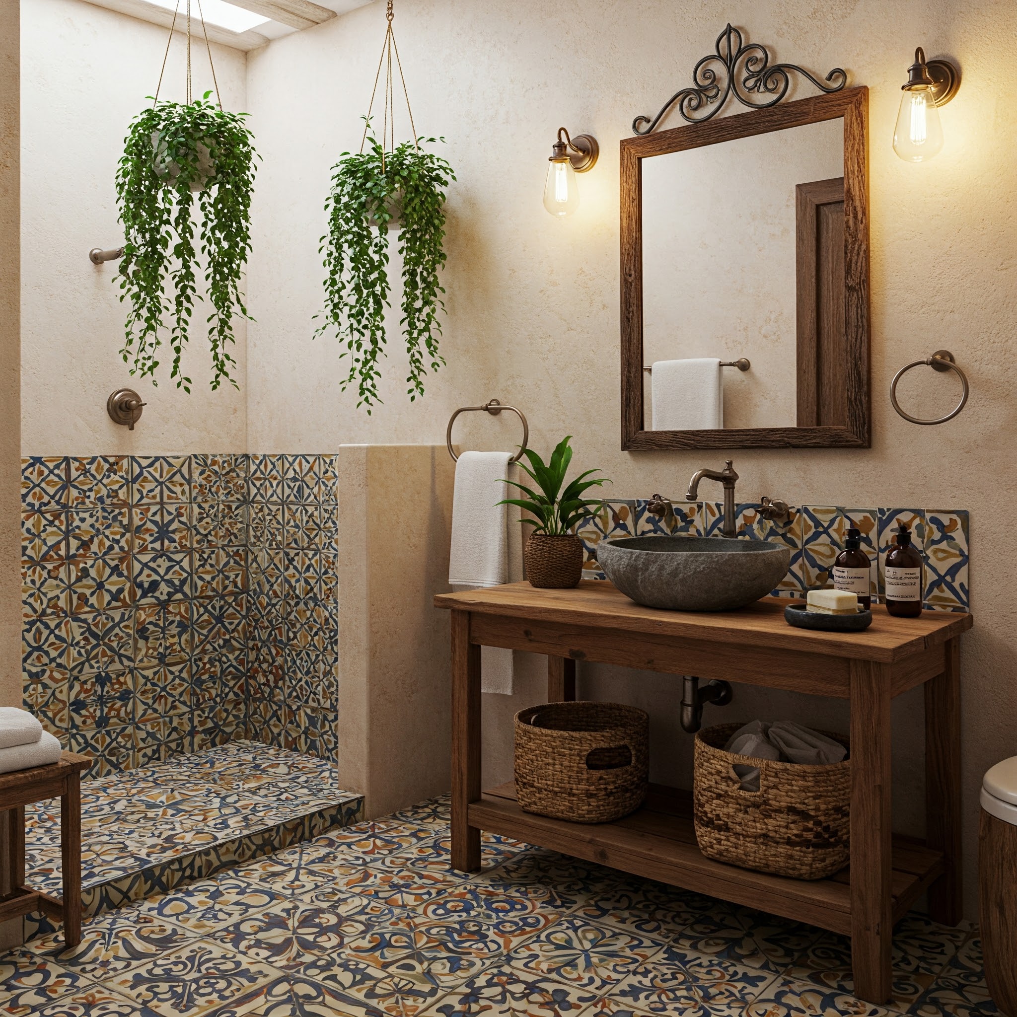 Even small spaces like bathrooms can benefit from the charm of modern Mexican interior design.