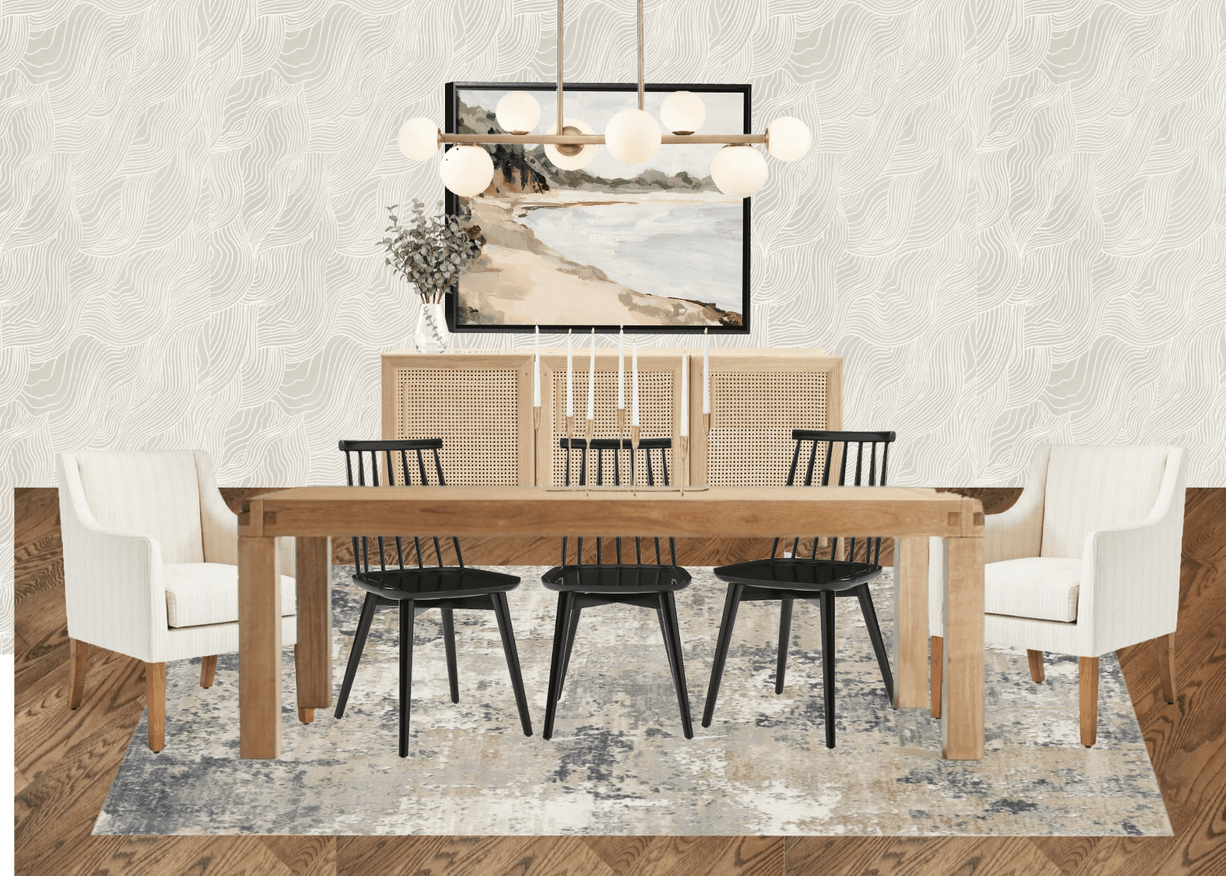 🎨 Digital Mood board: You’ll receive a DesignFiles link with access to your sourced assets. You can click each item to explore buying options, prices, etc.